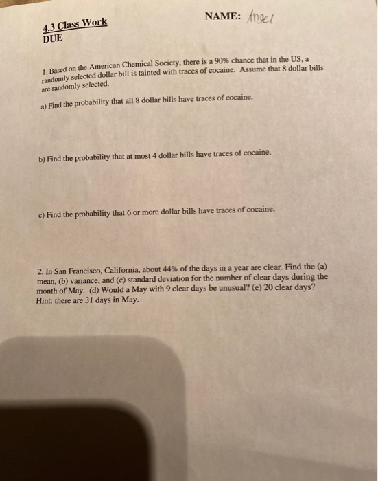 Solved Name Angel 4 3 Class Work Due 1 Based On The Ame Chegg Com