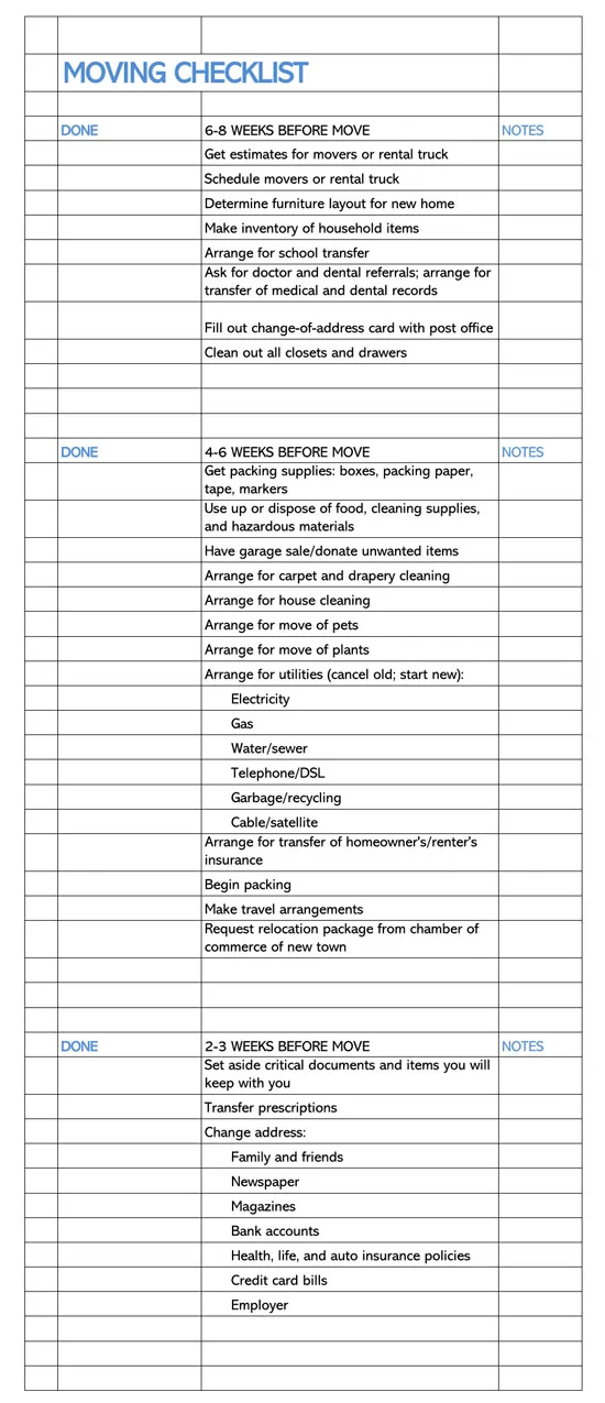 18 Free Easy Moving Checklist Templates Word Excel Pdf
