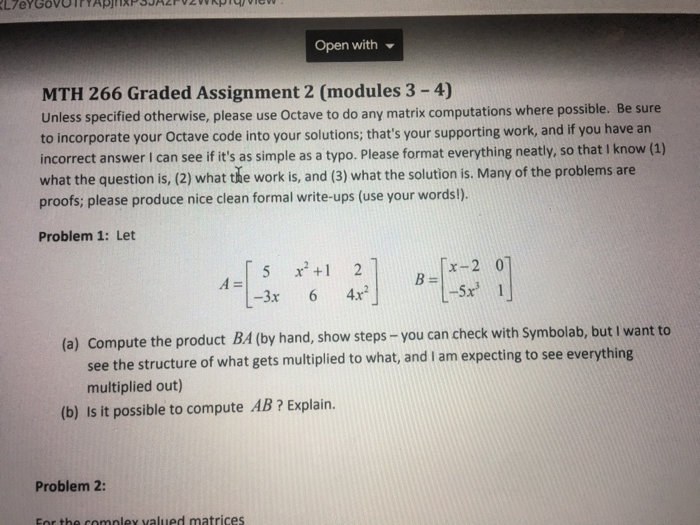 Solved Open With Mth 266 Graded Assignment 2 Modules 3 Chegg Com