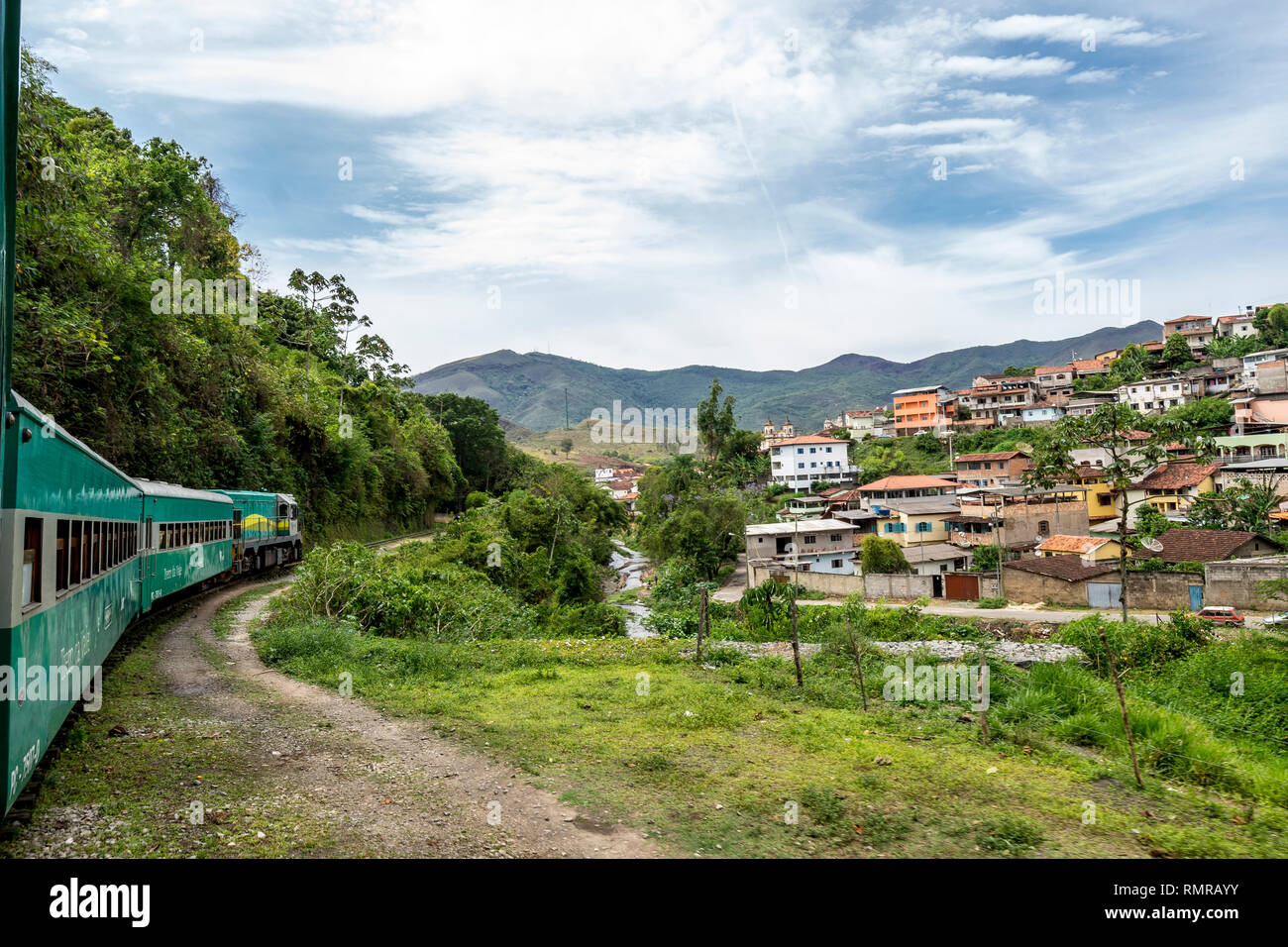 Steam Train To Ouro Preto Minas Gerais Brazil Passing A Village On A Hill Stock Photo Alamy