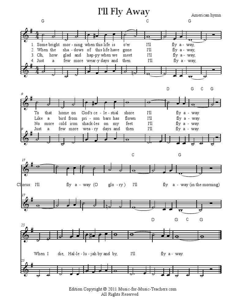 I Ll Fly Away Sheet Music With Harmony American Songs Christian Songs
