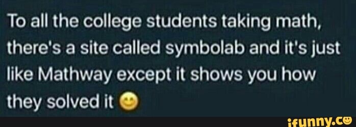 To All The College Students Taking Math There S A Site Called Symbolab And It S Ust Like Mathway Except It Shows You How They Solved It Ifunny