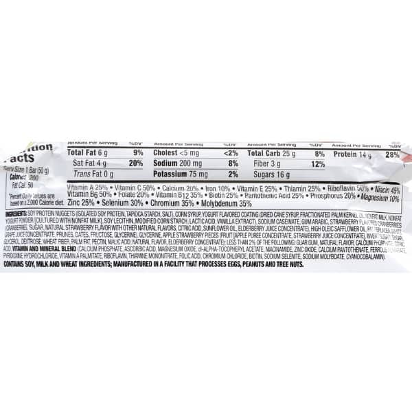 Quaker Granola Bars, Yogurt Flavored Coating, strawberry;. ZonePerfect Protein Bars Products Strawberry Yogurt Protein Bar The freshness of strawberries and the creamy sweetness of yogurt burst with flavour in this highprotein bar Nutrition Information (Serving Size 176 oz (50 g)). Trader Joe's Dried Fruit Bar Strawberry;.