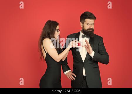 Rejected Offer Couple In Love Celebrate Anniversary Romantic Gift Box Jewelry Engagement Marriage Proposal Handsome Man And Elegant Woman In Love Romantic Engagement Engagement Concept Stock Photo Alamy