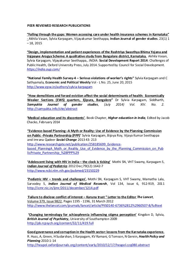 Peer Reviewed Research Publications