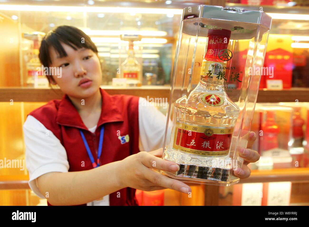 File An Employee Shows A Bottle Of Wuliangye Liquor At A Store In Ganyu County Lianyungang City East Chinas Jiangsu Province 27 September 13 Stock Photo Alamy