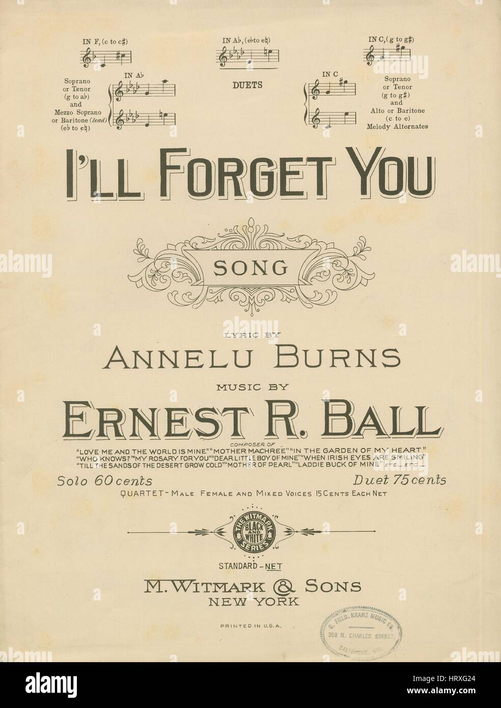 Sheet Music Cover Image Of The Song I Ll Forget You Song With Stock Photo Alamy