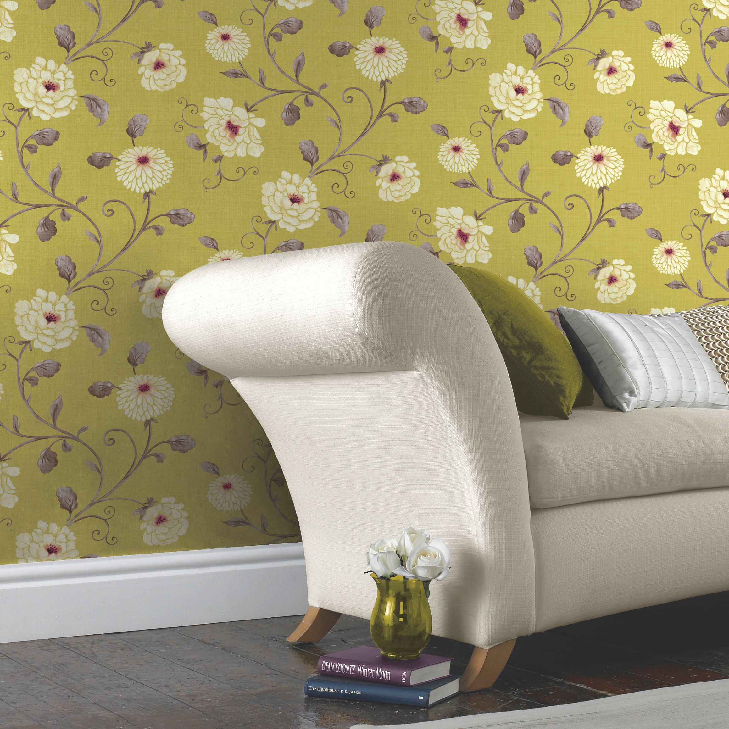Colours Dorthea Grey Yellow Floral Mica Effect Smooth Wallpaper Diy At B Q