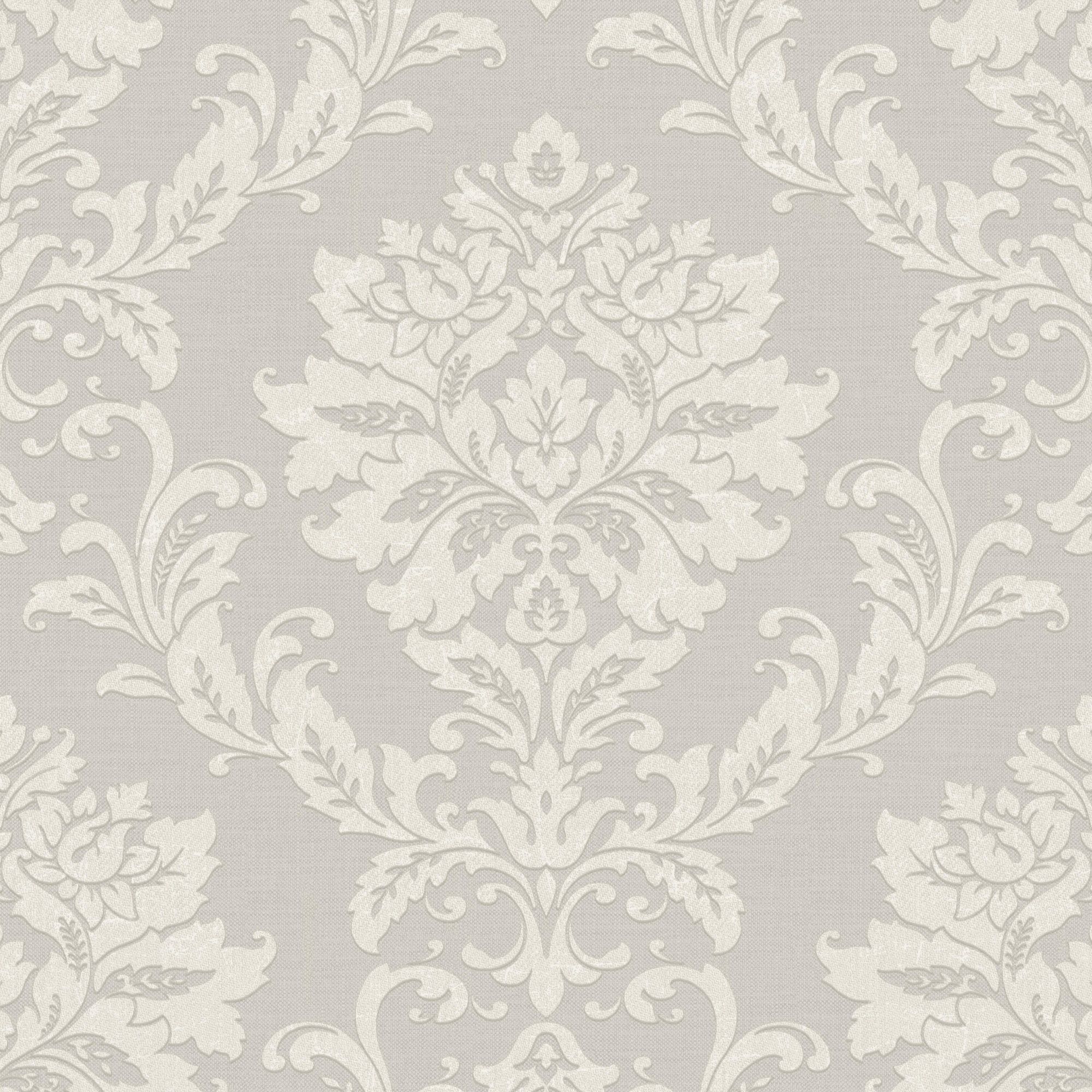 Goodhome Abeli White Russian Damask Metallic Effect Textured Wallpaper Diy At B Q