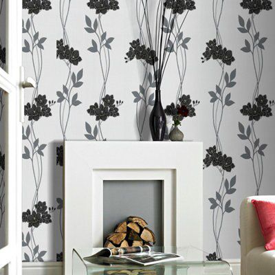 Graham Brown Superfresco Black Ornamental Orchid Textured Wallpaper Diy At B Q
