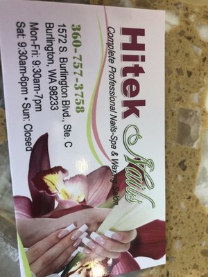 Get reviews, hours, directions, coupons and more for HiTek Nails & Tanning at 711 Omache Dr, Omak, WA 941 Search for other Nail Salons in Omak on The Real Yellow Pages®. Hours may fluctuate Distance 930 miles Edit Show Map HiTek Nails Useful Links Add a HiTek Nails Store;. Hi Tek Nail Spa, INC 711 Omache Dr, # B, Omak, WA 941 Rated 43 based on 21 Reviews "Very impersonal push people out the door as fast as they can.
