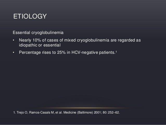 Agnello V The etiology and pathophysiology of mixed cryoglobulinemia secondary to hepatitis C virus infection Springer Semin Immunopathol 1997;. Vasculitis INTRODUCTION Influenza virus vaccineeinduced cryoglobulinemia has been reported in only 1 patient,1 whereas. Mixed Cryoglobulinemia (Types II and III) In contrast to type I cryoglobulinemia, mixed cryoglobulinemia (MC) is characterized by a large number of associated etiologic processes, including infections, autoimmune diseases, and cancer;.
