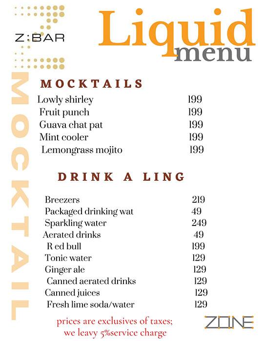 Z Bar Menu Menu For Z Bar Zone By The Park Bengaluru Bengaluru