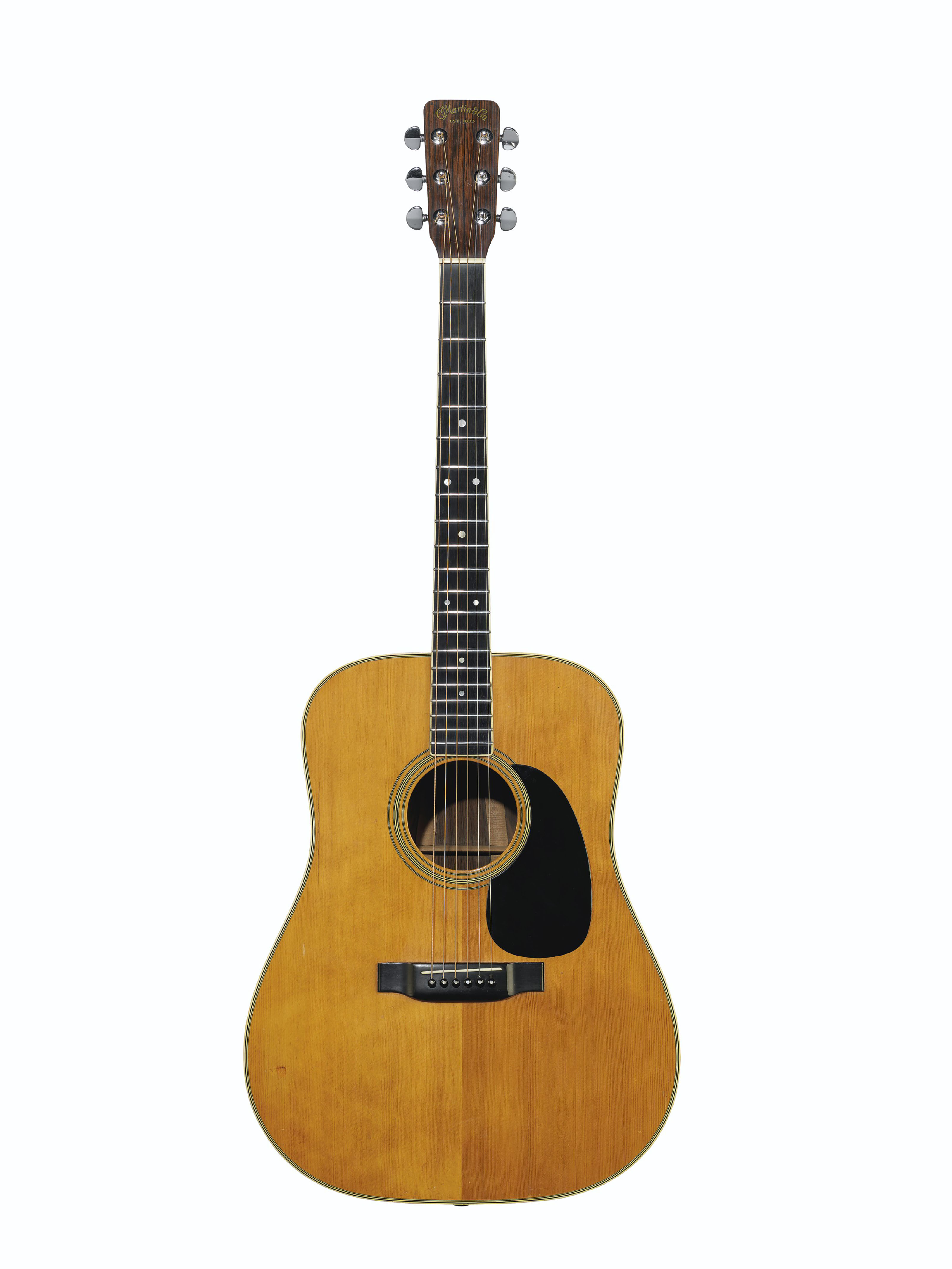 CF MARTIN & COMPANY, NAZARETH, 1969 AN ACOUSTIC GUITAR, D35 Branded internally CF MARTIN & Co / NAZARETH PA. Accompanied by the original pickguard, a facsimile copy of a receipt for repairs carried out by Chandler Guitars. The sweet tones of David Gilmour’s treasured 1969 Martin D35 resonate through many classic Pink Floyd songs since the guitarist purchased the instrument from a musician while outside Manny’s.