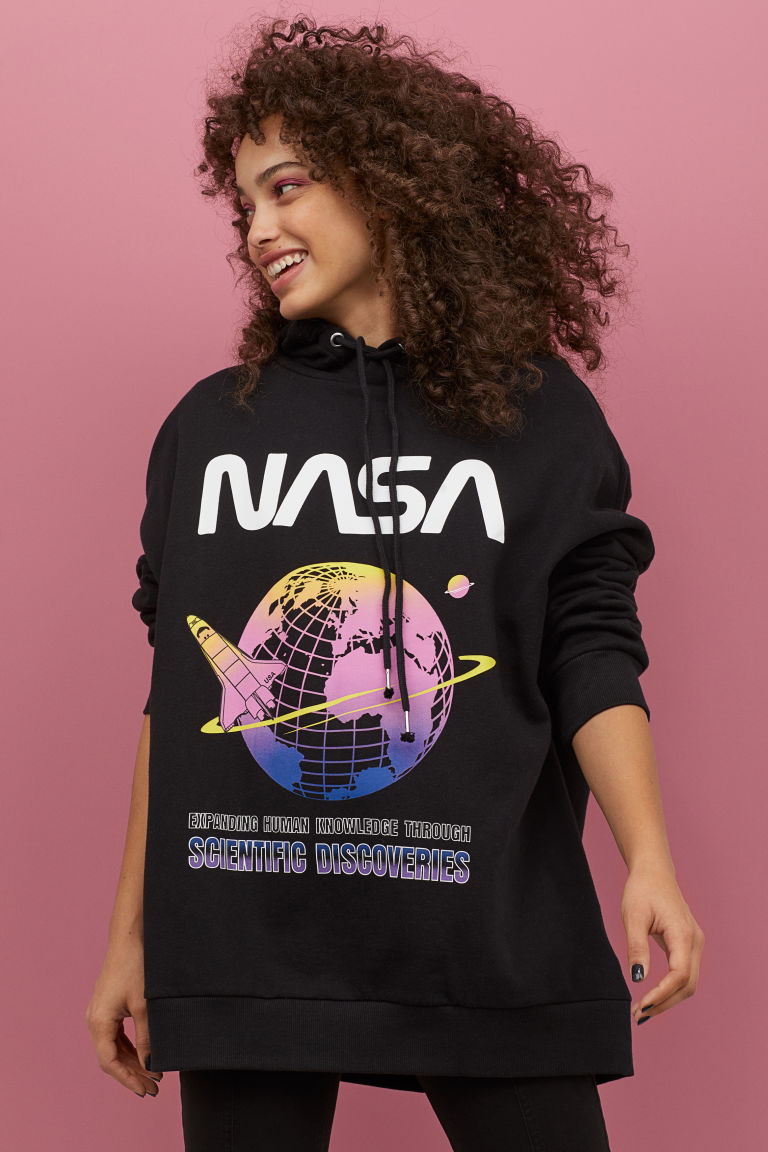 Boxy Capuchonsweater Zwart Nasa Dames H M Nl Nasa Clothes Nasa Hoodie Nasa Shirt