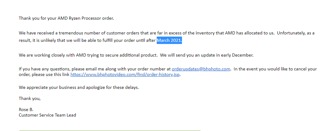 I Just Got This Email From B H Regarding My 3080 Tuf Order Nvidia