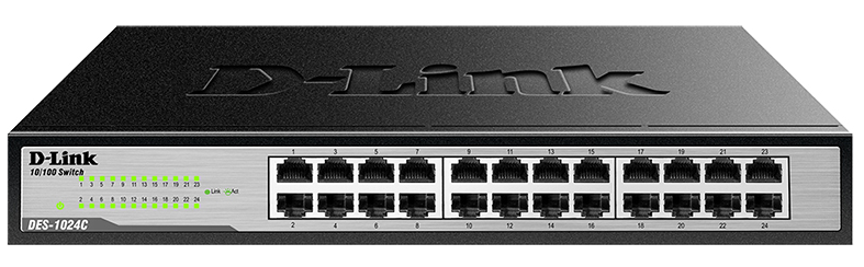 DLink DES1024C Unmanaged Switch is economical, plugandplay networking switch solution for SOHO and small and medium businesses wanting to benefit from the increased bandwidth of Fast Ethernet It provides 16 10/100 Mbps ports that enable you to easily expand your network and provide a quick way to upgrade your network to fast connectivity. Item 3 DLink DES1024D 24Port Unmanaged Desktop Rackmount 10/100 Ethernet Switch 3 DLink DES1024D 24Port Unmanaged Desktop Rackmount 10/100 Ethernet Switch $1500 item 4 D‑Link DES1024D Switch 24Port 4 D‑Link DES1024D Switch 24Port $1999 Free shipping item 5 DLink DES (DES1024D) 24Ports RackMountable Switch Tested,. NETGEAR 24Port Gigabit Ethernet Unmanaged Switch (JGS524) $15 off w/ promo code 28WTRCLS234, limited offer Format Rackmount Standards IEEE 8023i 10BASET Ethernet IEEE 8023u 100BASETX Fast Ethernet IEEE 8023ab 1000BASET Gigabit Ethernet IEEE 8023z 1000BASEX Gigabit Ethernet IEEE 8023x Flow Control Primary Ports 24 x RJ45 Primary Port Speed 10/100/1000Mbps.