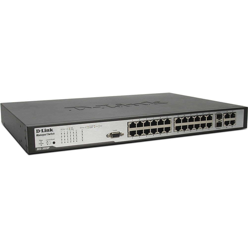 DLink DES1026G 24Port 10/100 2 Gigabit 1000BASETX Switch Gbps Switching Capacity,NonBlocking WireSpeed Architecture,Two 10/100/1000 Ports for HighSpeed Gigabit Connectivity 7,398. • 24 Port 10/100 BaseT PoE Switch with 2 x 10/100/1000 BaseT/SFP Combo Ports • Support IEEE 8023af and 8023at PoE Standard • IEEE 8021Q Virtual LAN (VLAN) • Support Auto Surveillance VLAN (ASV), Auto Voice VLAN • Broadcast, Unicast and Multicast Storm Control • Support Smart IPMACPort Binding. The DES1024D is a highperformance switch designed specifically for environments where traffic on the network and the number of users increase continuously 24port 10/100BASE Ethernet Switch with RJ45 connectors Supports Autonegotiation of speed and duplex modes for each port Supports AutoMDI/MDIX on each port, eliminating the.