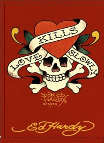 Amazon Com Buyartforless If Rp 31x23 2 Black Plexi Framed Love Kills Slowly Skull Bones Tattoo By Don Ed Hardy Designs 31 5x23 5 Art Print Poster Heavy Stock Imported Heart Posters