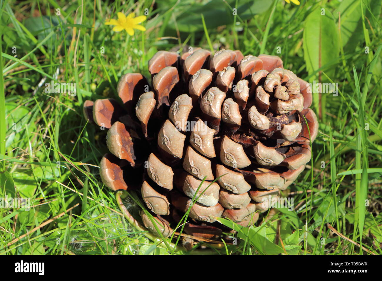 Pine Cone On Grass In A Garden Stock Photo Alamy