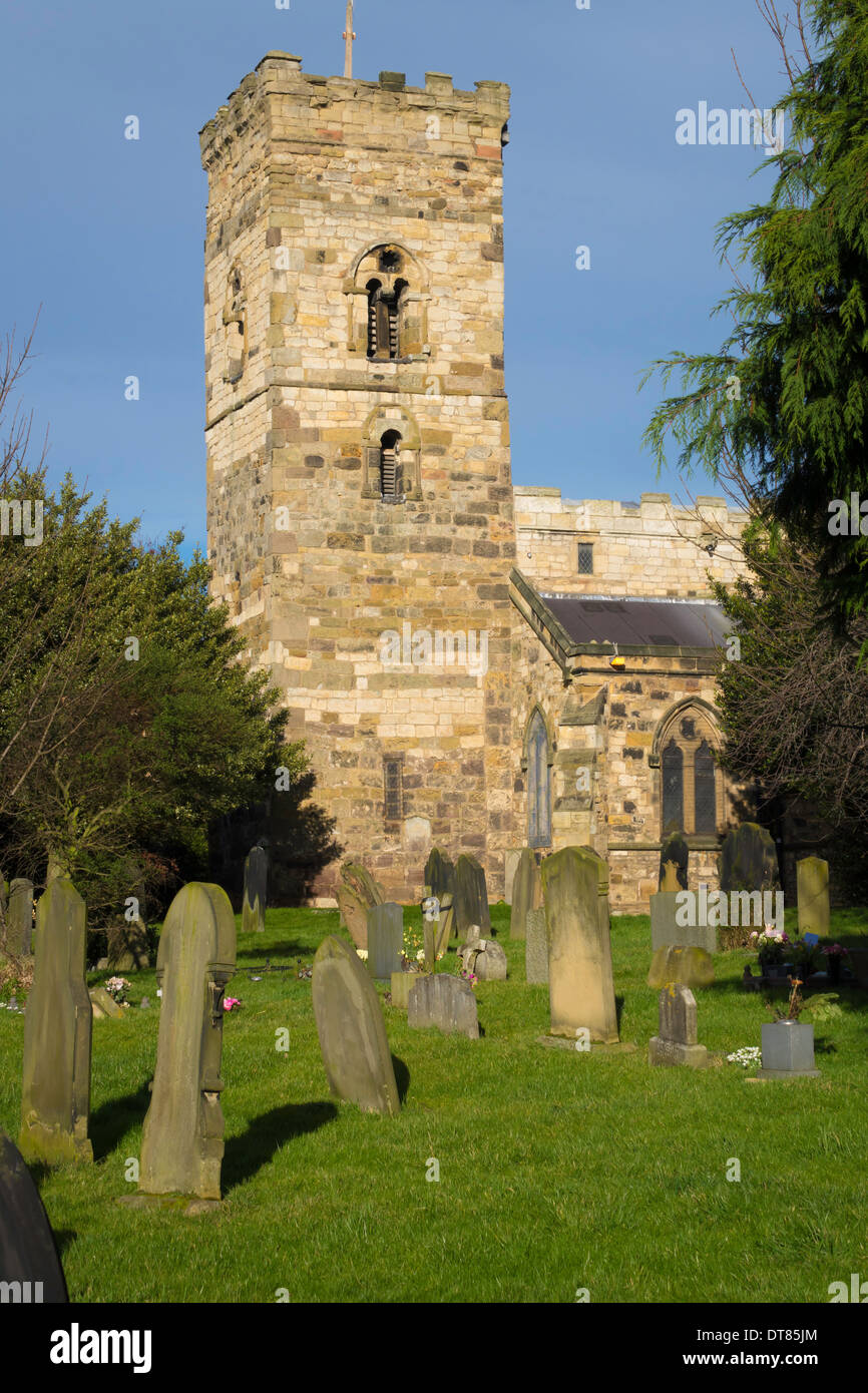St Cuthberts Church Of England Tower Built C Ad 1000 And Graveyard In Stock Photo Alamy