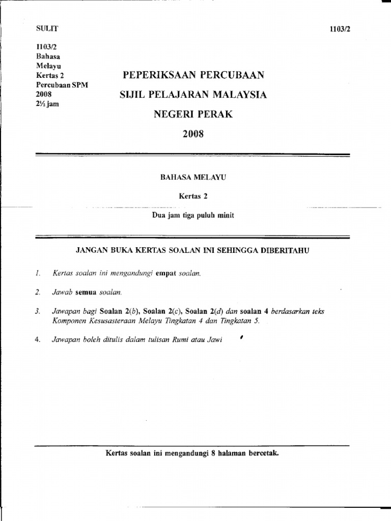 Soalan Percubaan Spm 19 Bahasa Melayu Sbp