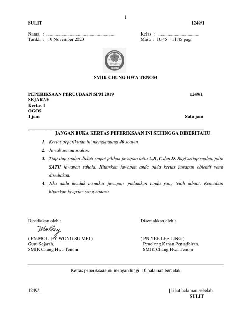 Peperiksaan Percubaan Spm 19 Sejarah Kertas 2