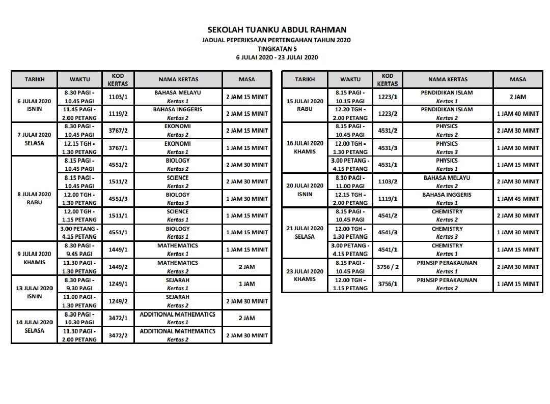 Star Ipoh Di Twitter Jadual Peperiksaan Pertengahan Tahun Tingkatan 5 Selaras Sbp