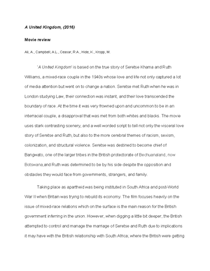 Critics consensus Wellacted, solidly crafted, and allaround worthy, A United Kingdom presents an absorbing look at a singular truelife love story Read critic reviews. A United Kingdom – The film is based on the true story of the heir to the throne of Bechuanaland, Seretse Khama of the Bamangwato tribe, who studies law in London immediately after World War II There he meets a White woman (Ruth Williams) whom he eventually marries, despite the protests of their families, and opposition from the British government, which is concerned about relations with South Africa and the stability of the entire region of Southern Africa. And directed by Amma Asante (Belle), A UNITED KINGDOM tells th.