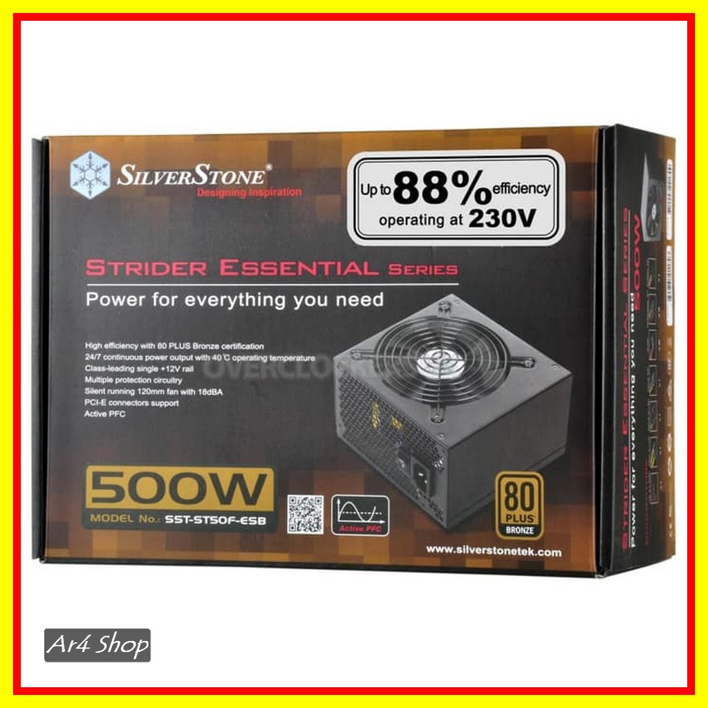 SilverStone ST50FESB 500W ATX12V 80 PLUS BRONZE Certified Active PFC Power Supply Fans Single 1mm silent fan 12V Rails Single Efficiency %~85% at %~100% loading Over Voltage Protection Yes Model # ST50FESB Item # 9SIA62V86N62 Return Policy View Return Policy $7685 –. 80 PLUS Silver 500W500W mini redundant power supply ET500ARGB 80 PLUS Bronze 500W ATX power supply TX700 Gold 80 PLUS Gold 700W TFX power supply AD1DC SilverStone has long been a favorite case manufacturer for us at Hardware Asylum and today we will be looking at one of their latest mid tower chassis the FARA R1 Pro. SilverStone Essential SSTET500 500W 80 Bronze Power Supply SSTET500 NonModular ATX Form Factor Max Output 500W Active PFC 80 PLUS Bronze Rating MTBF 100,000 Hours Operating Temp 0c ~ 40c Single 1mm Silent Fan Noise Level 18dBA 3 Years Limited Warranty.