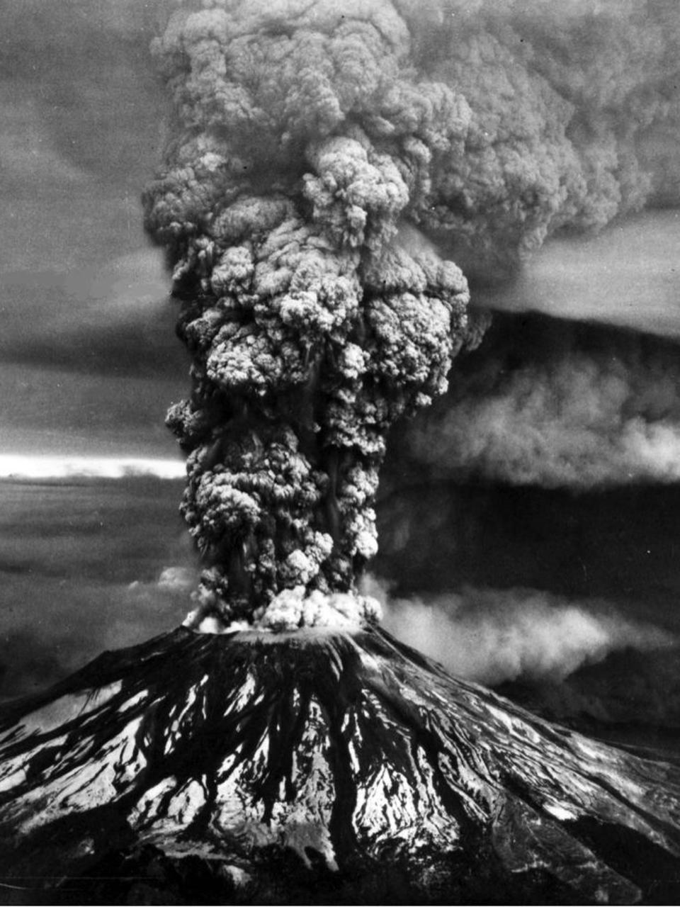 Mount St Helens sends a plume of ash, smoke and debris skyward in this May 18, 1980 photo The ash plume is being carried eastward by prevailing winds, depositing ash across several states (AP. The sixth photograph in a series of images showing the May 18, 1980, eruption of Mt St Helens Clearly visible in the first few images is the largest recorded landslide in history—the entire north face of the volcano sliding away following a shallow earthquake The newlyexposed core of the volcano then erupted. Pyroclastic Flow Outcrop on the Pumice Plain at Mount St Helens This photo shows an outcrop of pyroclastic flow deposits near Willow Creek on the Pumice Plain at Mount St Helens The dramatic lines crossing the outcrop indicate contacts between different layers of pyroclastic flow deposits Two participants of the 19 GeoGirls program are shown studying the outcrop, using it to understand the eruptive history of the volcano.