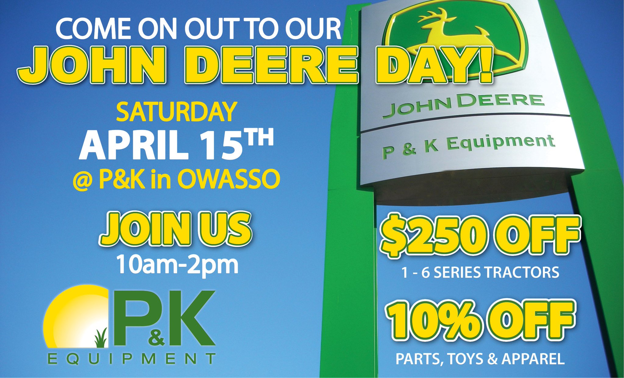 P K Equipment V Twitter Saturday Owasso Jd Day Drive Green Event Be There Good Food Great Deals Super Fun Ride Drives See You Saturday In Owasso T Co Ksxfjn0jmq